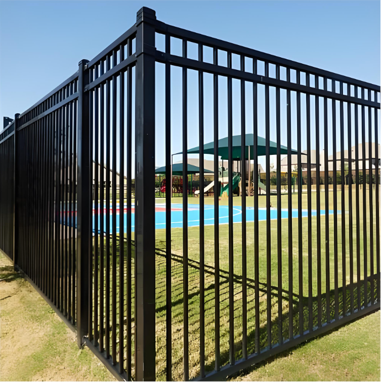 आउटडोर आवासीय पाउडर लेपित 6 फीट धातु स्टील फ्लैट टॉप बाड़