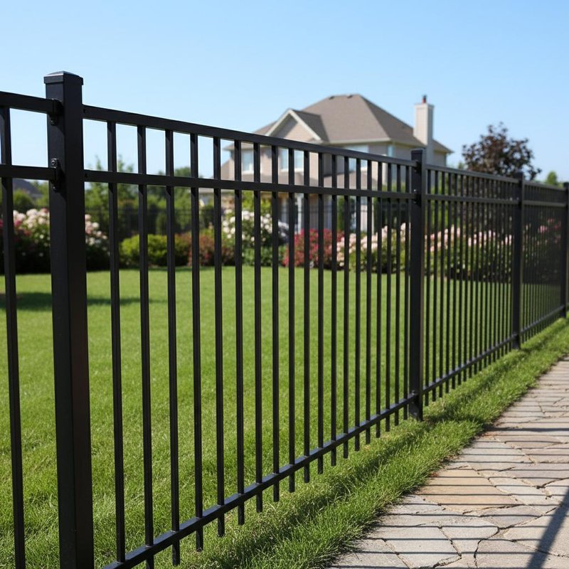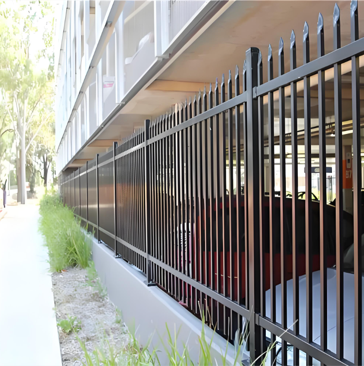 आउटडोर आवासीय पाउडर कोटेड 6 फीट मेटल स्टील फ्लैट टॉप फेंस